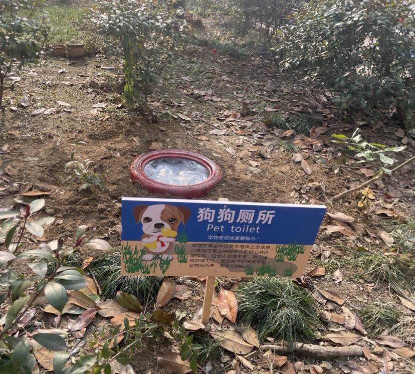 目前,盛世龙城小区已率先在1栋、6栋、10栋附近绿地旁,建成并投入使用多处宠物公厕。该设施采用木桩围栏搭配创意提示牌设计,旁侧配套拾便纸袋及收纳盒,兼顾实用性与美观性,成为小区内一道亮眼的文明风景线。