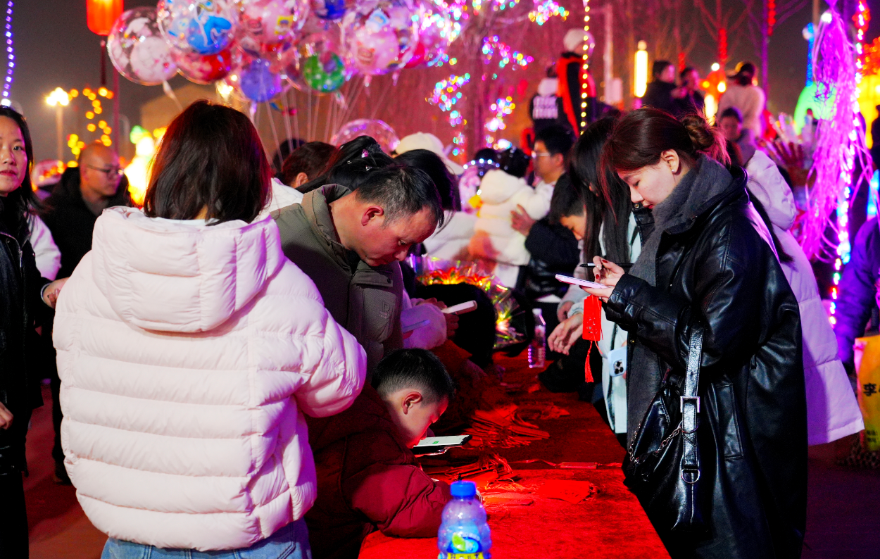 投壶、猜灯谜等传统互动区前,大人小孩排起长队。俯身投壶、凝神猜谜,指尖起落间,是传统年俗的雅趣,也是阖家团圆的温馨时光。