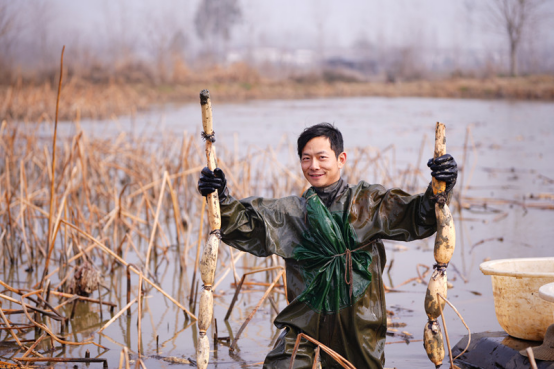 好产品从无捷径,全靠“笨功夫”打磨。钱坤坚持施用有机肥,严格把控藕塘水位,高温天守在塘边开展飞防作业,把过往的失败教训逐一转化为种植经验。功夫不负有心人,他种出的莲藕形成了“粉而不噎、清甜少丝”的独特口感。尽管皮肤晒黑、双手磨糙,他却甘之如饴:“把藕塘当孩子养,才对得起土地。”