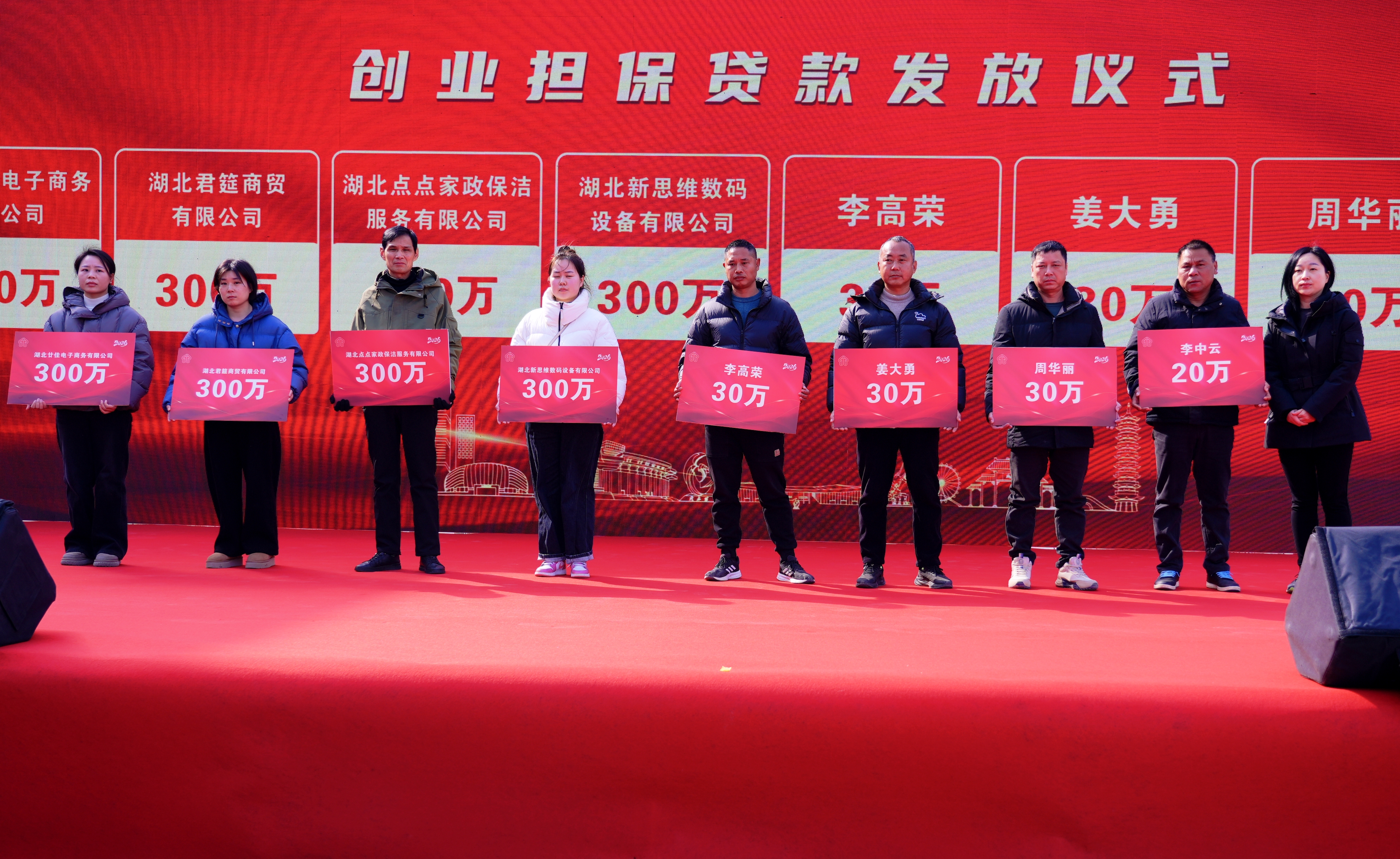 启动仪式上,一系列务实举措推出,用“真金白银”为就业创业保驾护航,彰显潜江人社的责任与担当。市人社部门为中伦云尚智城(省级返乡创业示范园)、湖北欣源辅料(省级归雁项目)两家单位授牌,表扬其在返乡创业、带动就业方面的突出贡献,发挥示范引领作用,吸引更多人才回流、项目落地。同时,现场为4名创业者及4家小微企业集中发放创业担保贷款,总金额1310万元,精准直击创业者“融资难、融资贵”的痛点堵点,为创业之路纾困解难、注入活水。