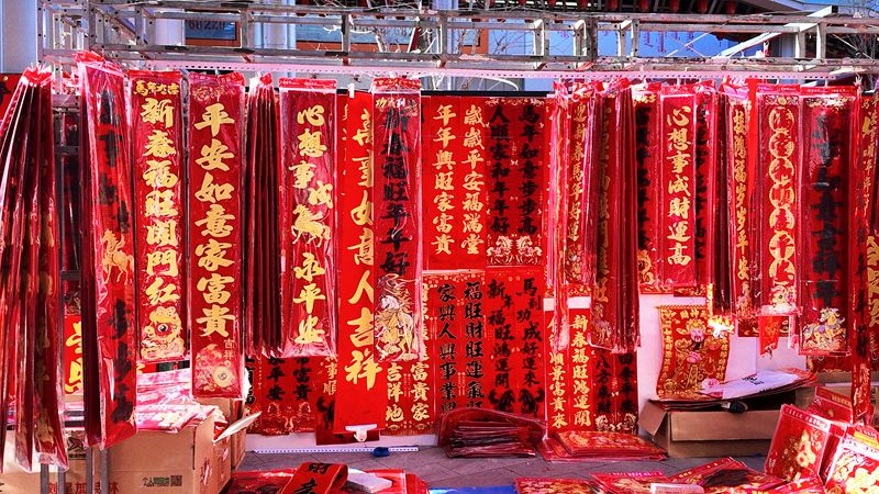 步行街的年货摊上,烫金的对联、大红的福字铺天盖地。王姨在一处摊位前细细挑选,最后选了一副最喜欢的春联:“这个好,带回去贴在家里。”