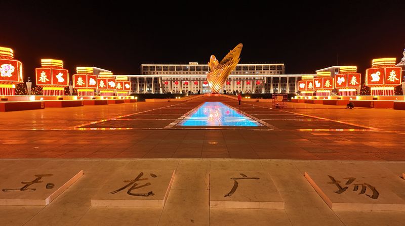 春节前夕,赤峰玉龙广场灯光布置。新华网 刘娜 摄