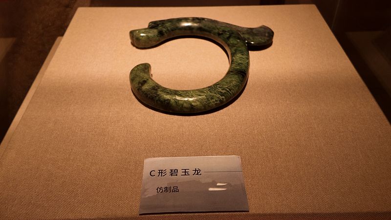 红山文化博物馆内展出的C形碧玉龙(仿制品)。新华网 刘娜 摄