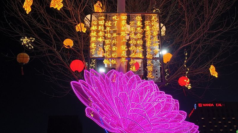 灯光不语,却道尽了这座城市对游子最直白的牵挂。它不再只是照亮街道,而是成了一种情感的地标,一种无声却盛大的春节迎接仪式。