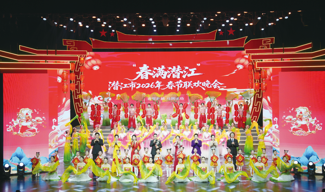 灯火璀璨耀水乡,欢声笑语贺新春。2月11日晚,曹禺大剧院内灯光璀璨、歌舞飞扬,“春满潜江”2026年春节联欢晚会精彩上演。社会各界人士欢聚一堂,品年味、叙乡情、谋发展,共迎丙午马年到来。