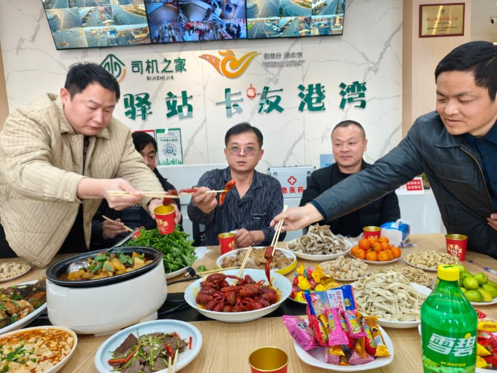 小年年味浓,驿站暖如春。2月11日南方小年当天,沪渝高速潜江服务区司机之家暖意融融,一场专属货车司机的团年宴温情开席,让奔波在春运路上的卡友们,在异乡尝到了家的味道、感受到了年的暖意。
