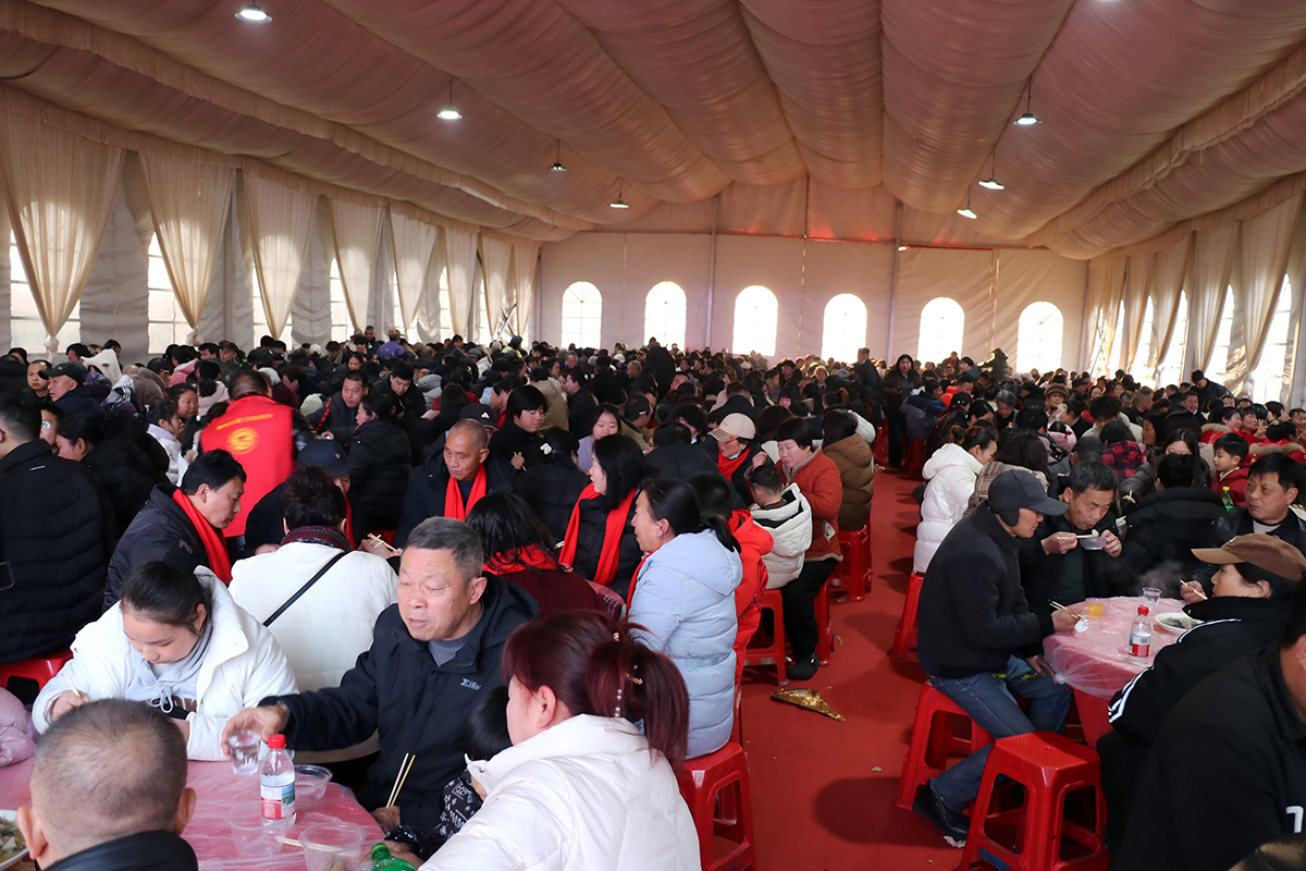 2月11日,农历腊月二十四,园林街道深河社区时代天骄小区张灯结彩、暖意融融,原深河社区3、4、5组搬迁一周年百家宴在此举行,800余名居民欢聚一堂,共叙邻里深情,同庆新春佳节,共话乔迁喜悦。