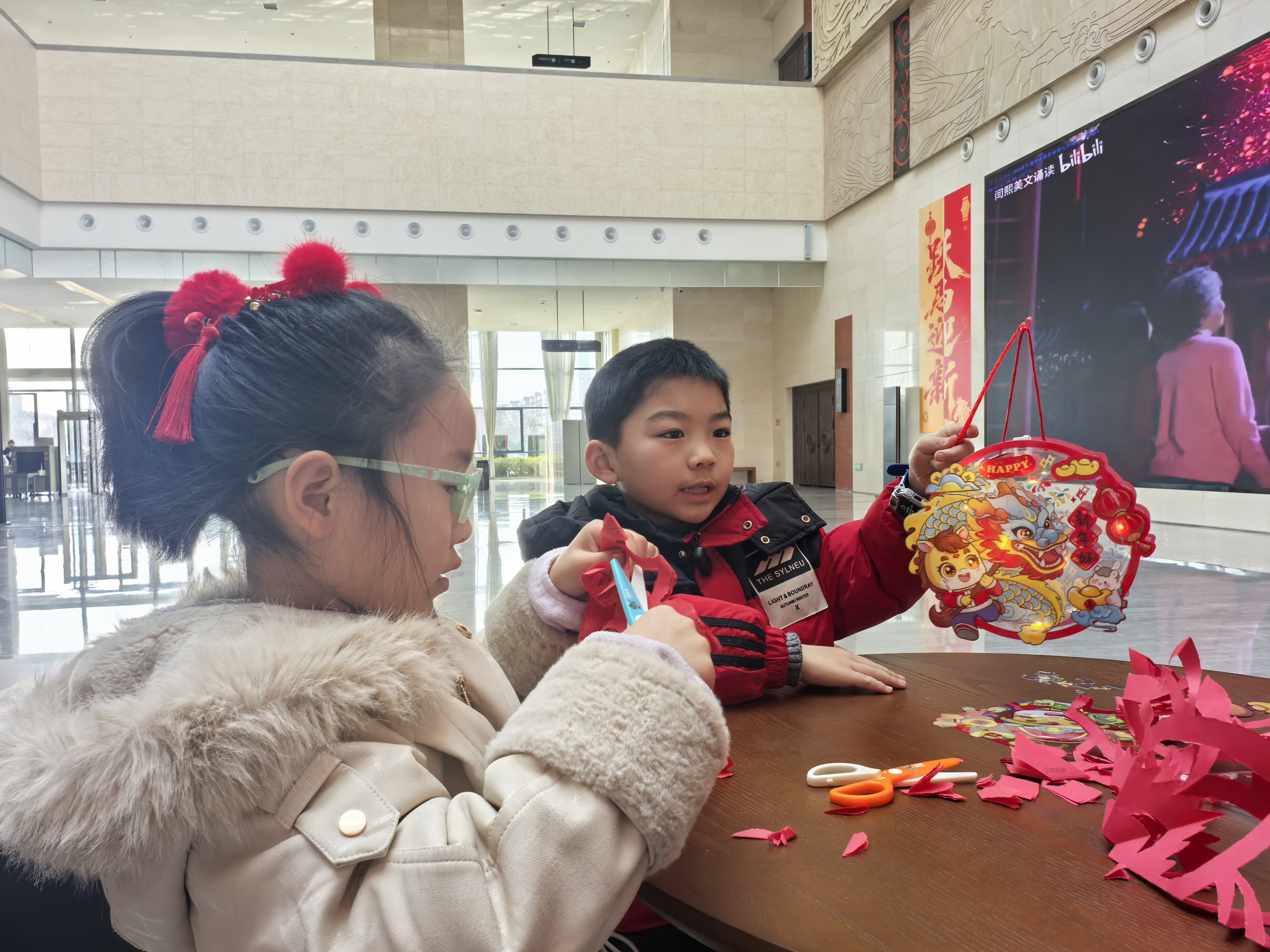 而在手作花灯和裁红剪纸区,则是另一番温馨景象。孩子们在家长的指导下,小心翼翼地折叠纸张、粘贴装饰,一盏盏寓意吉祥的花灯初具雏形。剪刀翻飞间,一张张普通的红纸在巧手裁制下,变成了好看的窗花。