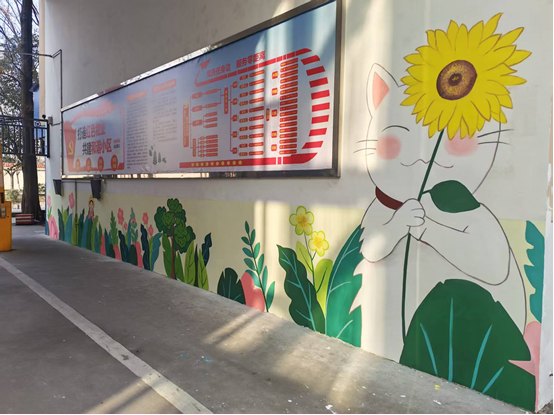 憨态可掬的卡通动物,清新雅致的花草纹样,还有邻里互助、文明养犬的主题彩绘……一幅幅作品贴合居民喜好,悄然爬上墙面。“以前这面墙破旧单调,现在画上这么好看的图案,年味儿一下子就浓了!”居民刘高红的喜悦之情溢于言表。