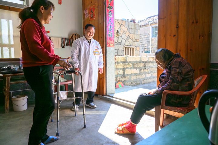 2025年12月10日,在莆田黄瓜岛,村医吴群雄去村民家中看望老人。蔡昊 摄