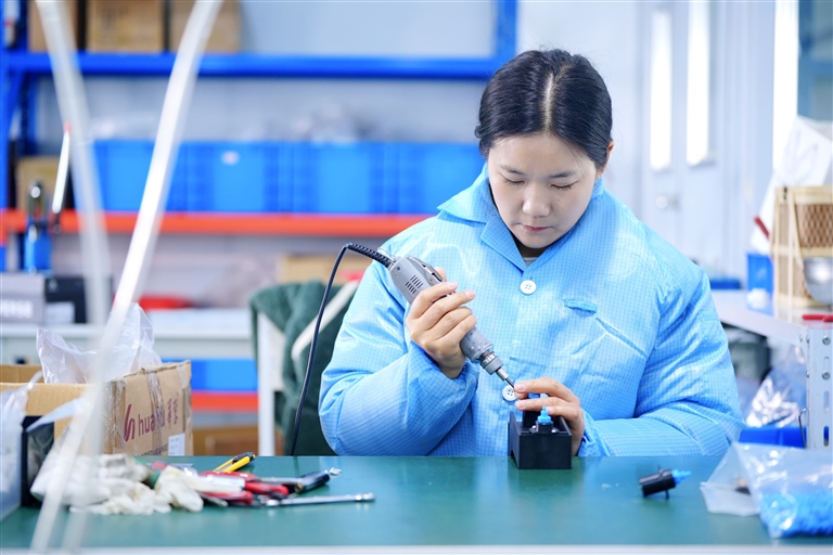 2月27日,在位于周矶管理区的湖北维力科技有限公司车间内,工人加紧赶制国外订单。企业2月24日(正月初八)复工,已接小字符喷码机订单100多台。公司去年设立越南分公司,今年拟建海外仓,优化产品,力争年产值5000万元,将外贸占比从30%提升至50%,以更快、更稳、更便捷的产品抢占国际市场,实现新春“开门红”。(潜江市融媒体中心记者 关洪磊 摄)