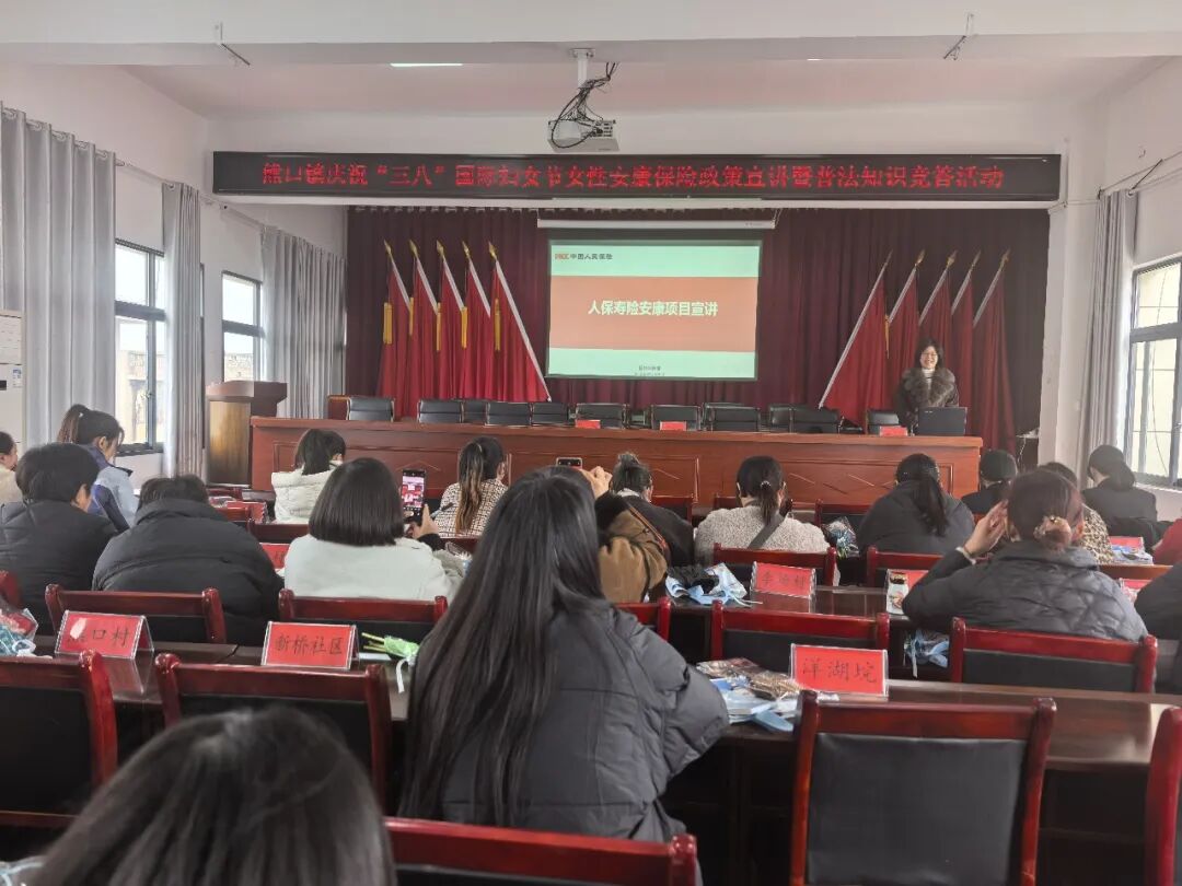 春风送暖,巾帼暖心。3月5日,熊口镇聚焦妇女权益保障和健康关爱两大核心,举办女性安康保险宣讲暨普法知识竞答活动,全镇机关女干部、各村妇女主任、企业女代表齐聚一堂,在学法、知法、懂政策中度过一个有意义的节日。