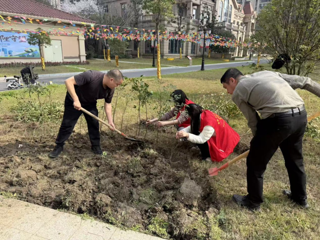 世纪苑社区以“春风添新绿 共建美家园”为主题,提前规划植树区域、备齐各类物资,现场讲解栽种技巧与后期养护知识,党员带头、居民踊跃参与,分工协作完成挖坑、扶苗、培土等工序,同步开展生态环保宣传,拉近邻里情谊,强化居民家园归属感。广中社区则联合人社、经信、税务等部门,以党建引领深化多方共建,聚焦拆违后的闲置荒地提质改造,精心打造绿色景观节点,现场种植桂花树,让昔日荒地变身生态小景,切实巩固环境整治成效。(潜江市融媒体中心记者 王宇杰 通讯员 汪芷茜 王阿慧)