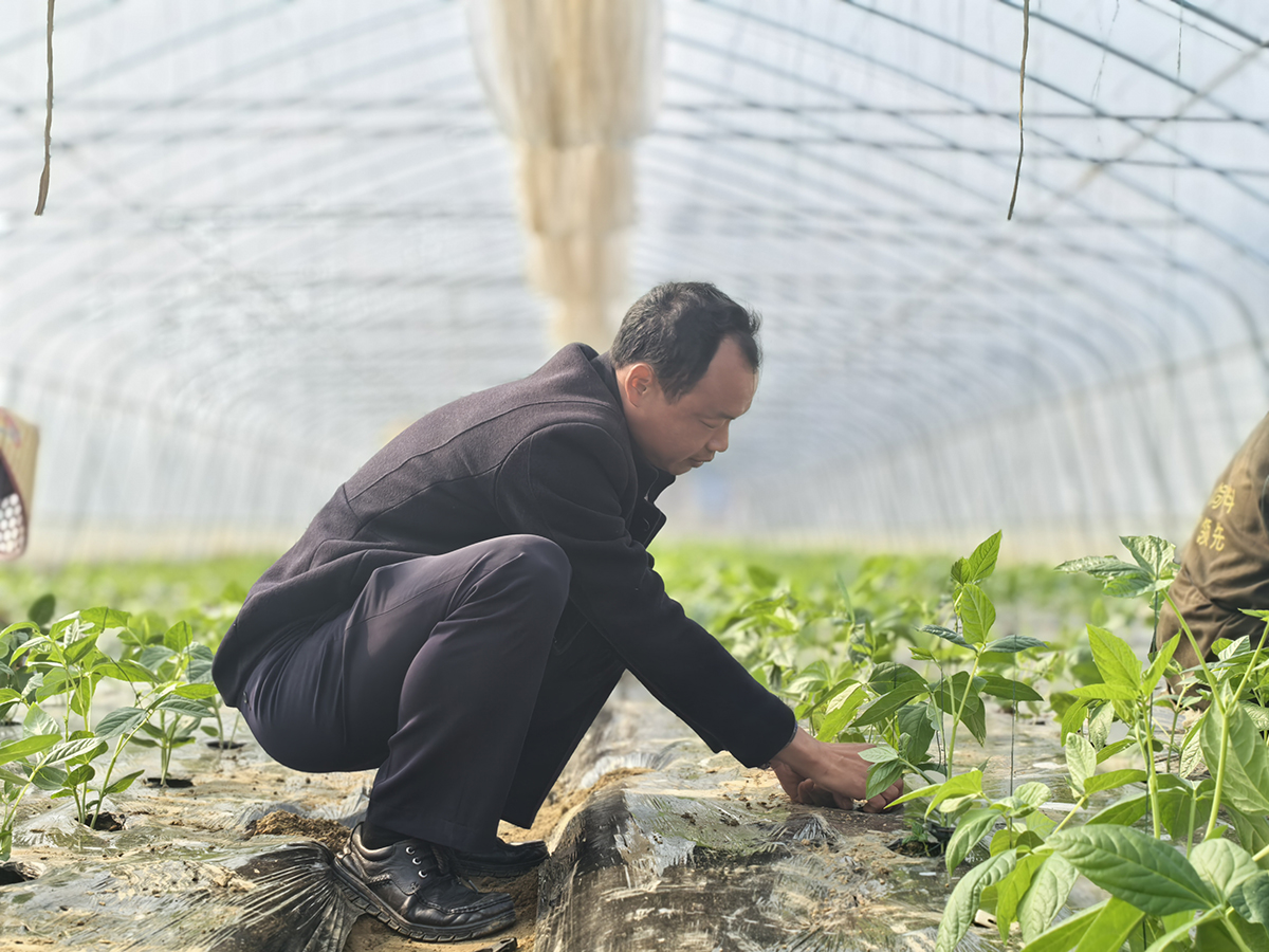农场负责人杨金金穿梭在棚间,一边仔细查看苗情长势,一边耐心接听种植户的技术咨询电话。“我年轻时从事工程项目,国家提出乡村振兴战略后我便下定决心转型投身农业。”杨金金介绍,他先赴山东积累蔬菜种植经验,2020年回到家乡后,看到当地不少土地闲置、蔬菜供应紧张,便决心发展大棚蔬菜产业。初期投入了16万元,后续陆续追加,总投资近30万元,一步步把种植基地做了起来。