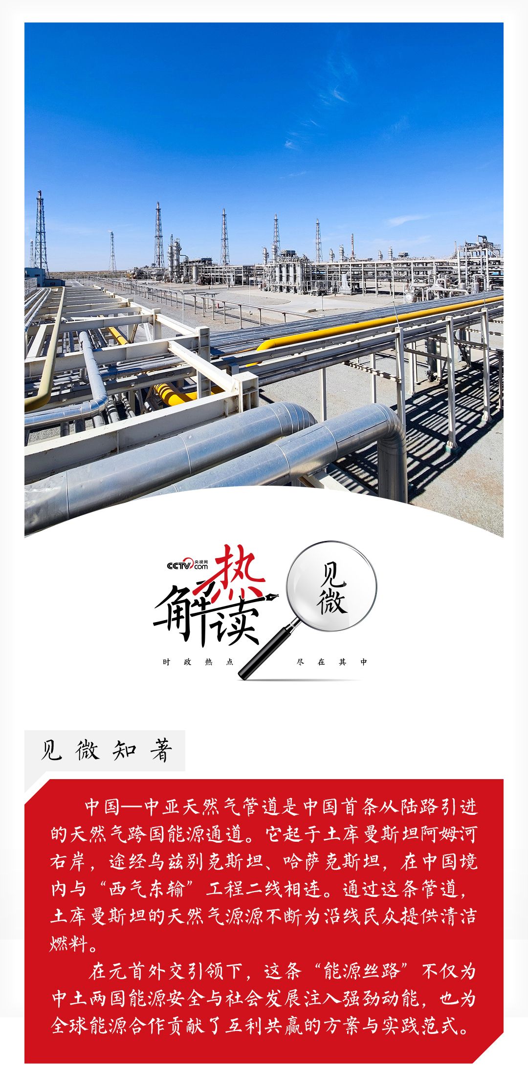 自2009年12月中国—中亚天然气管道启用以来,涌动不息的天然气,既助力中国能源转型,也为土库曼斯坦经济社会发展注入持久动能,让互利共赢的果实惠及两国人民。