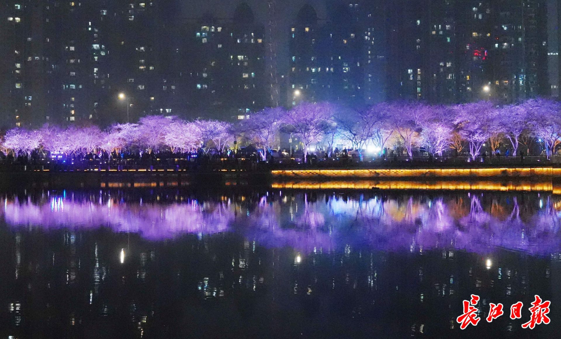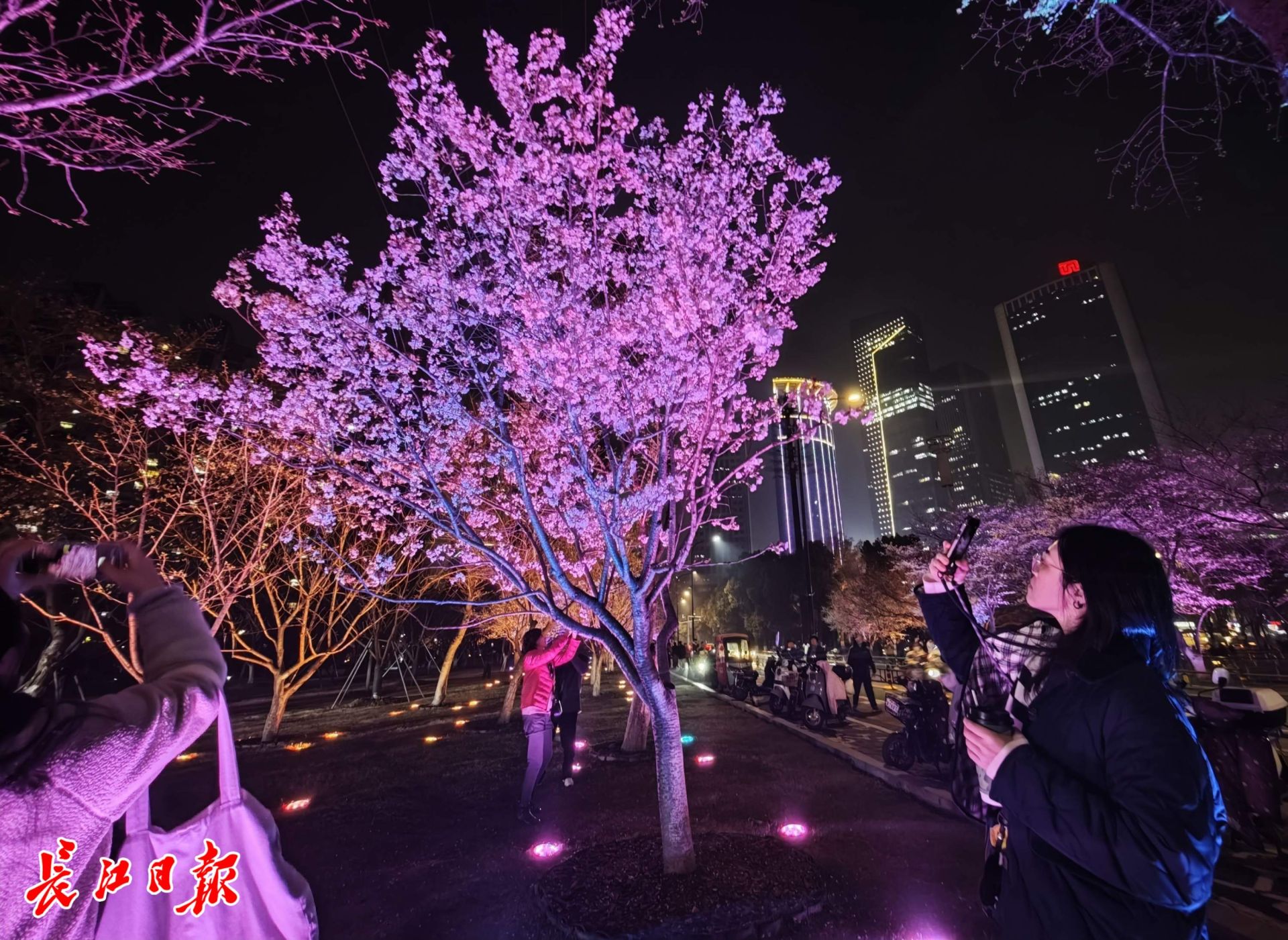 西北湖夜樱。 记者何晓刚 摄
