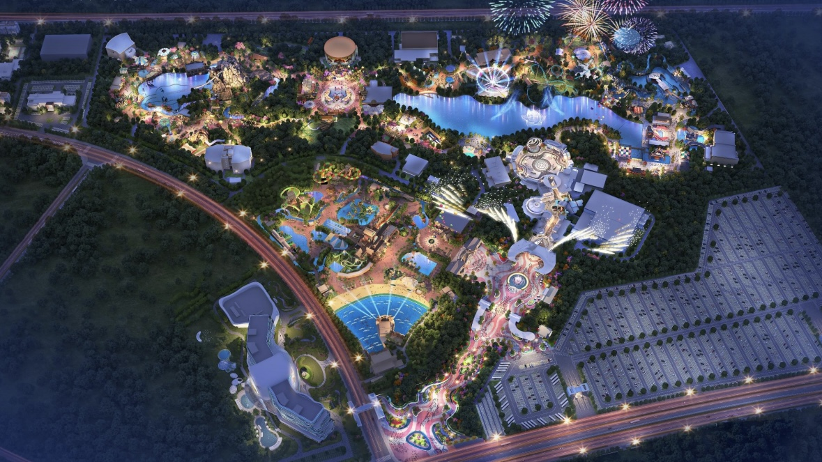 孝感方特旅游区坐落于孝感市临空经济区,毗邻武汉,距天河国际机场仅16公里,区位优势显著。作为华强方特集团在华中地区布局的全新文旅力作,项目整体由方特狂野大陆、方特水上乐园和熊出没酒店三大核心板块组成,形成了“主题乐园+水上娱乐+主题酒店”的全业态组合模式。