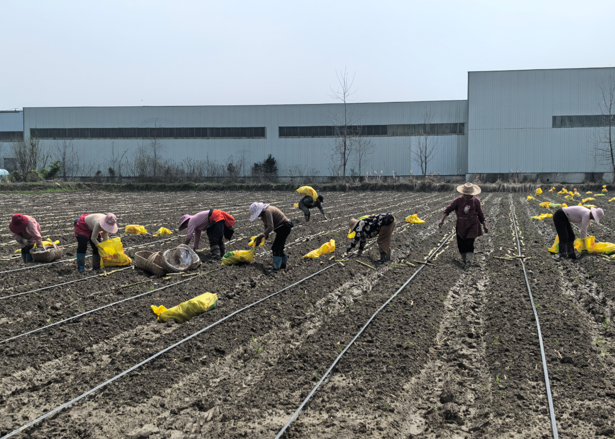 生姜种植基地里,同样人声鼎沸、干劲十足。工人们分工明确,扶苗、培土、浇水,动作麻利有序。湖北凡生农业发展有限公司生产负责人郭晓林蹲在田埂边,看着长势喜人的姜苗,脸上满是欣慰:“你看这姜苗,根系扎得实、叶片长得旺,按照这个势头,今年肯定能有个好收成!”