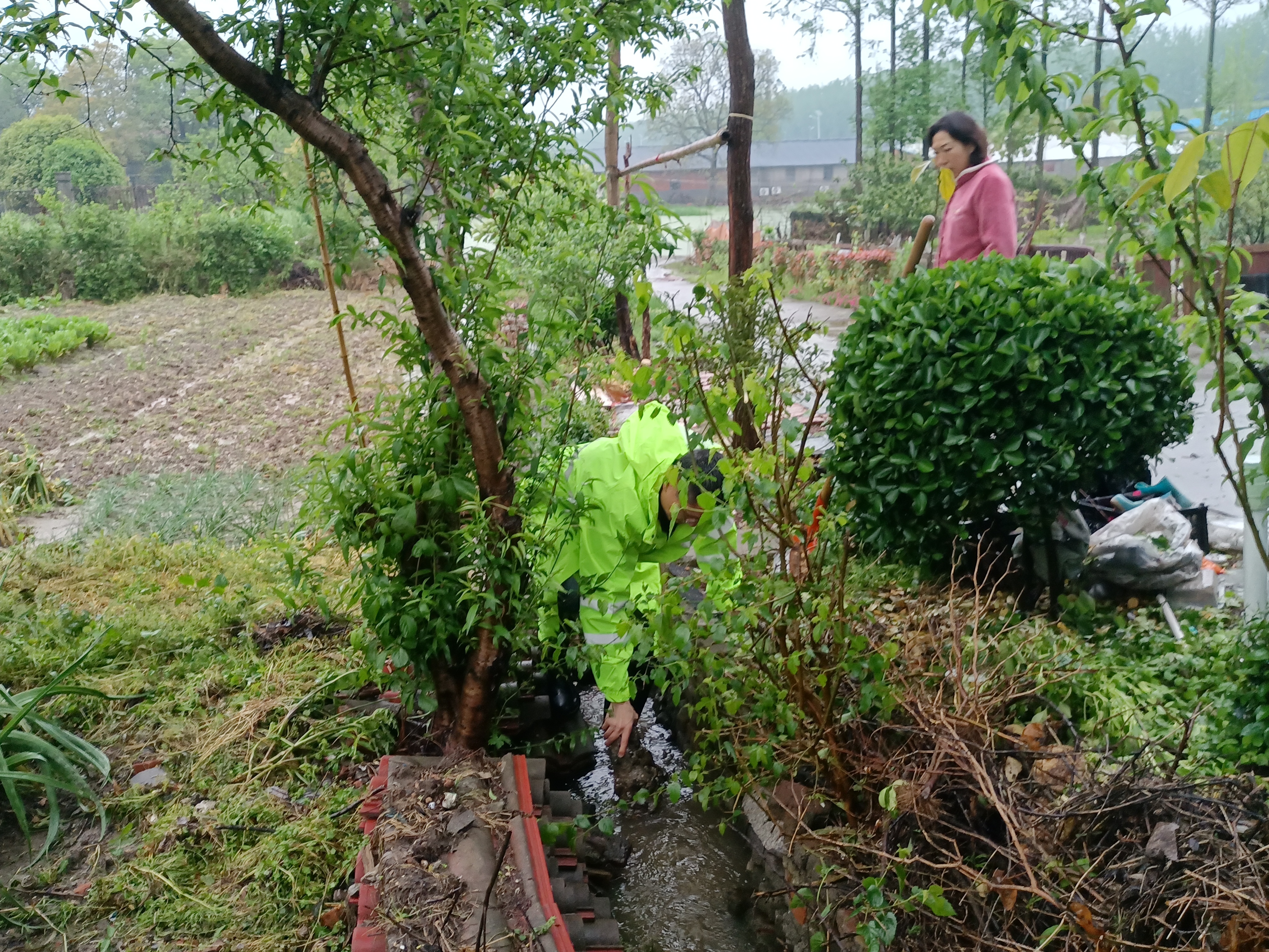 4月8日晚,园林街道组织党员干部、网格员、志愿者全力防汛排险。