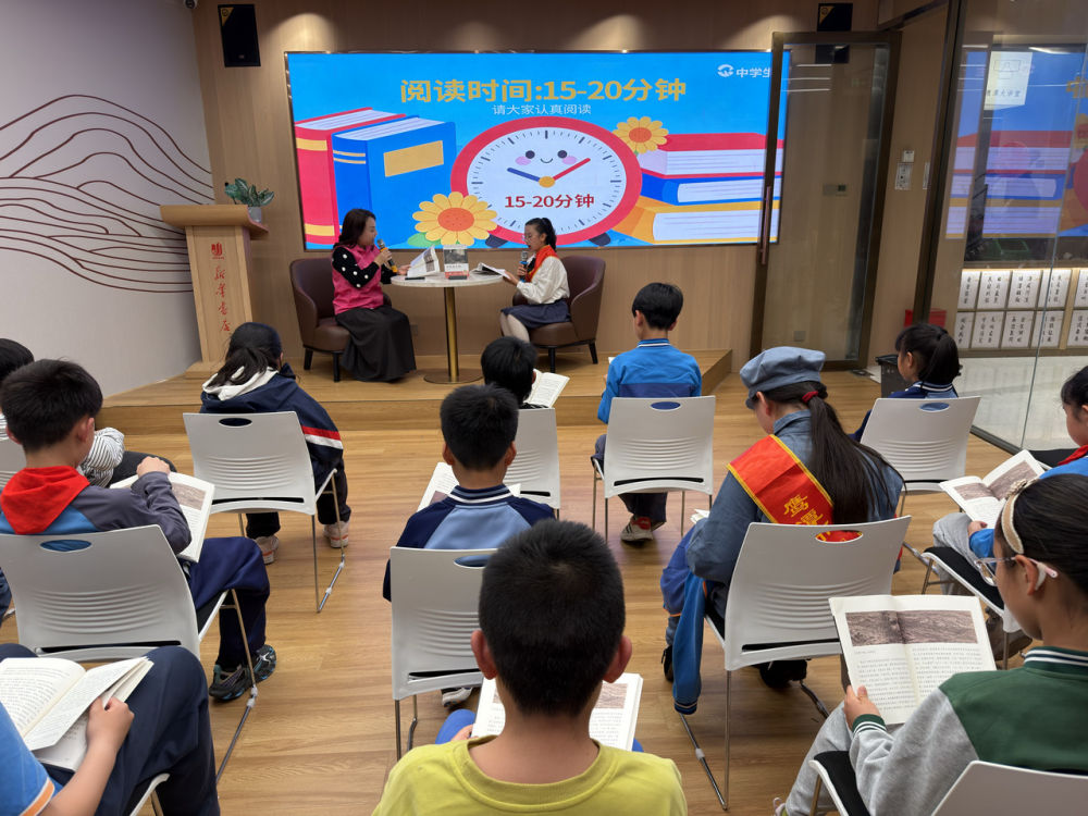 4月8日,一场主题阅读分享会在鹰潭书城举行。这是王萍在带着学生阅读《可爱的中国》。李成城摄