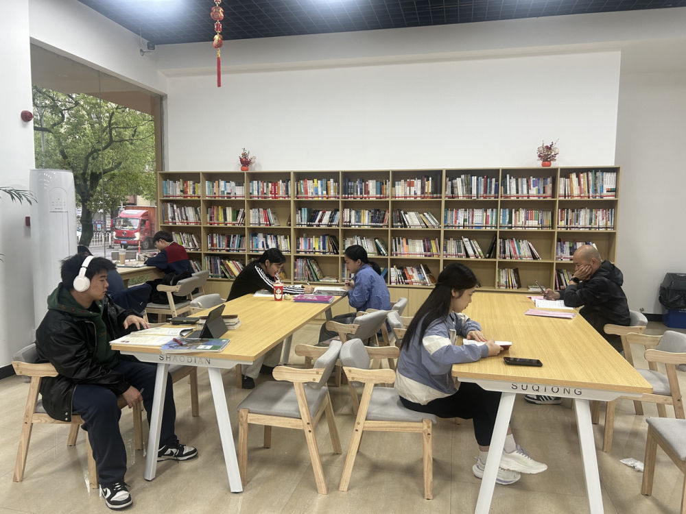 市民在鹰潭市图书馆24小时城市书房看书、自习。受访者供图