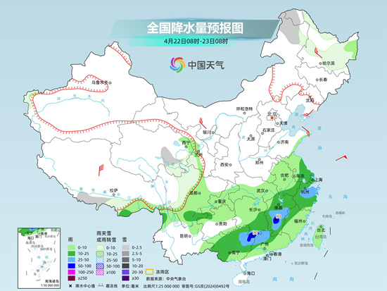 未来三天(4月20日至22日),我国降水范围较大,南方多地雨势较强,西南地区东部、江汉南部、江南大部和华南中北部等地有大到暴雨,局地大暴雨,并伴有强对流天气,需注意防范。同时,受冷空气和阴雨影响,长江中下游及其以北多地气温下降,黄淮、江南等多地冷暖反差明显,公众请适时添衣,谨防感冒。