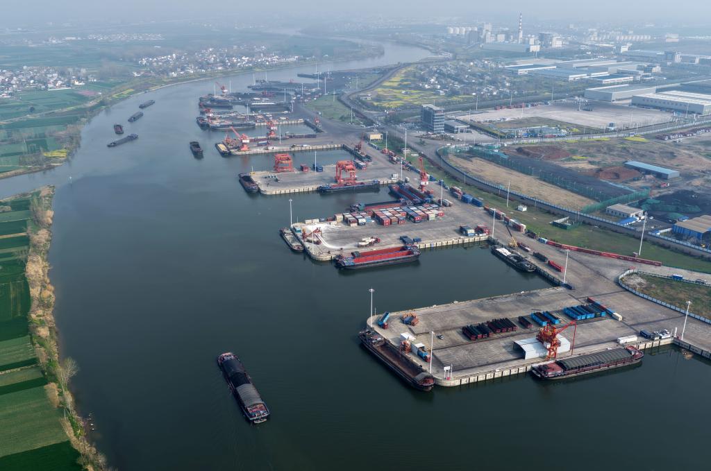 这是2026年3月31日拍摄的周口港中心港区范营作业区(无人机照片)。新华社记者李嘉南 摄