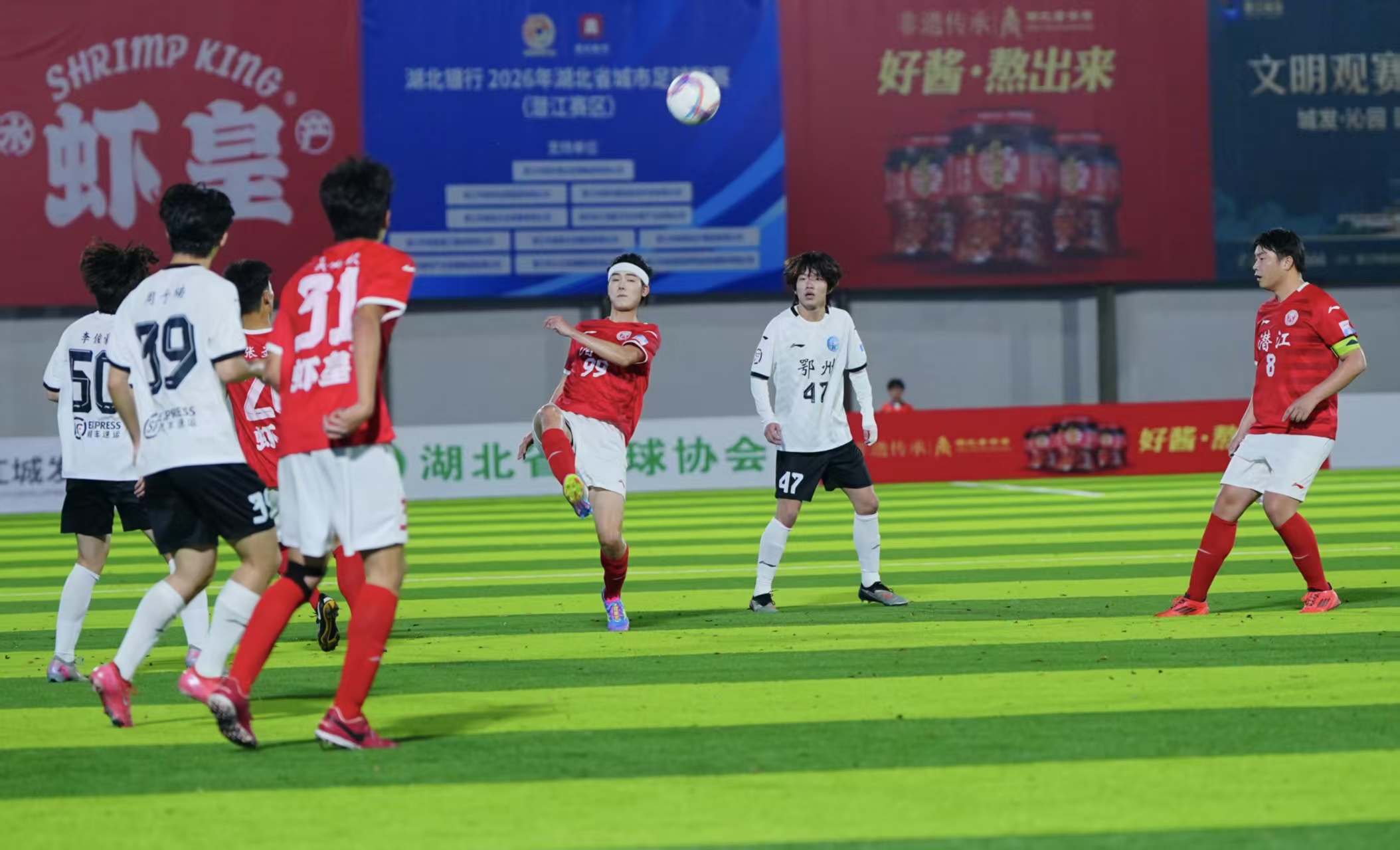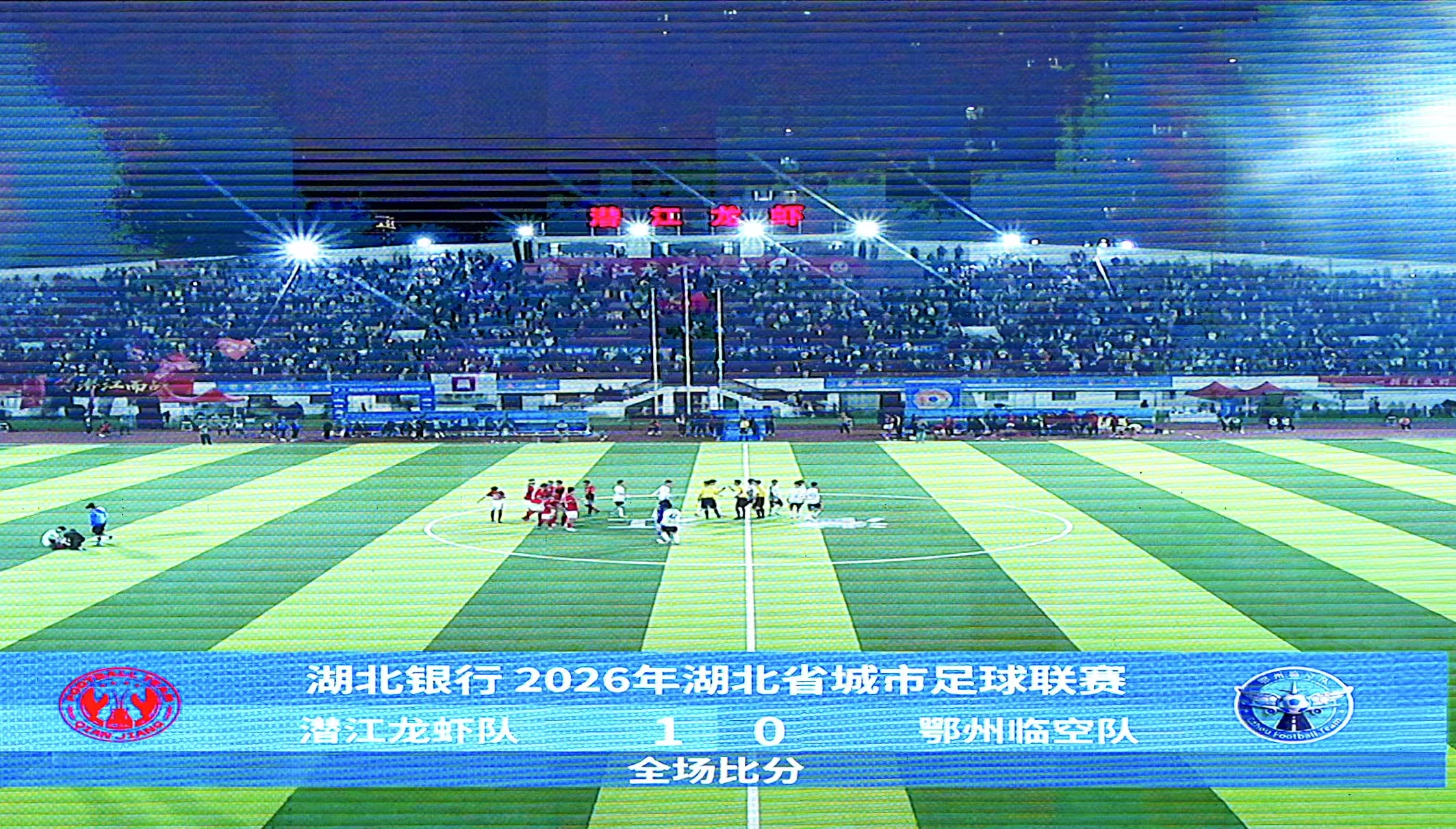 1比0,首秀开门红!4月25日晚,潜江中学体育场灯火通明,球迷的欢呼声将夜空点亮。2026年湖北省城市足球联赛(潜江赛区)揭幕战在这里打响,首次亮相的潜江龙虾队在最后时刻上演绝杀好戏,“钳”住了意欲高飞的鄂州临空队。