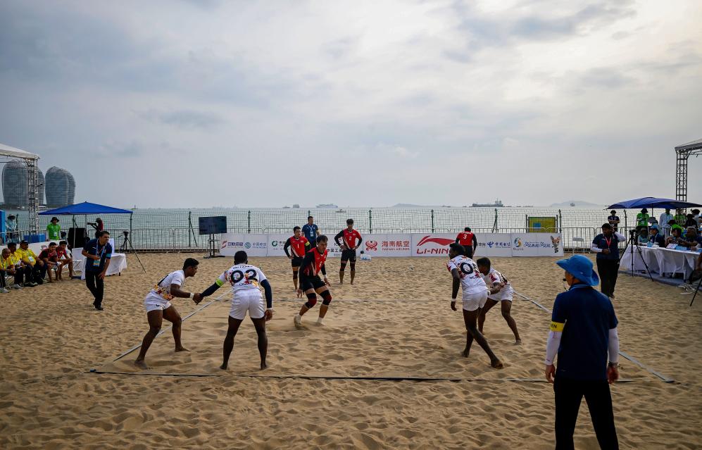 4月23日,斯里兰卡队和泰国队在亚沙会沙滩卡巴迪比赛中。新华社记者 赵子硕 摄