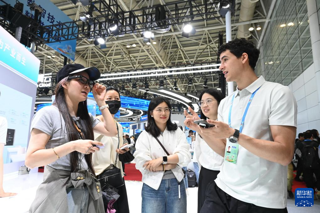 4月29日,观众在第九届数字中国建设峰会现场体验区参观。