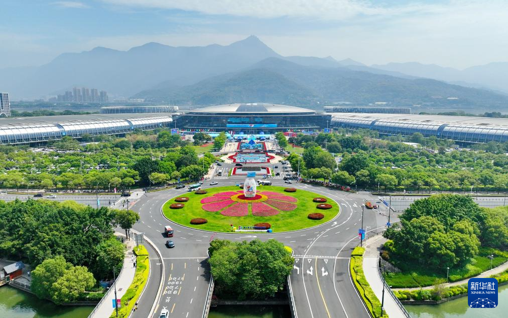 这是4月28日拍摄的峰会举办地福州海峡国际会展中心(无人机照片)。