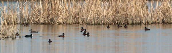 1月7日,省林业厅组织的我省第二次野生动物资源调查在潜展开,潜江区域的调查工作由华中师范大学吴润琦等三人组成的调查队负责,本次调查在返湾湖设立一个分区,六个观测点。当调查人员到达第三个调查点时,观测到了4只黑头白眼的青头潜鸭,因为没有带高倍的“大炮筒”,所以没有拍到清晰的照片。1月20日,潜江市观鸟队获悉此消息后,也赶到返湾湖进行蹲点守候拍摄,功夫不负有心人,在下午1点左右拍到了青头潜鸭。