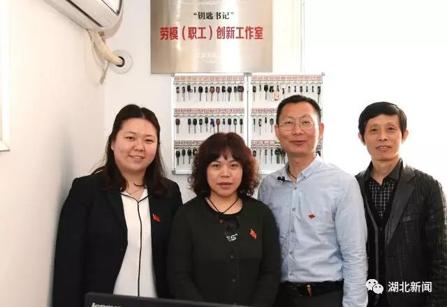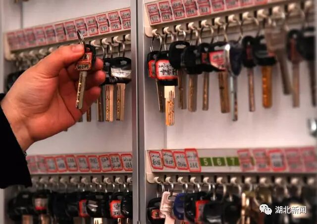 百步亭文卉苑社区“钥匙书记”秦永庆(右二)和同事们在钥匙保管室