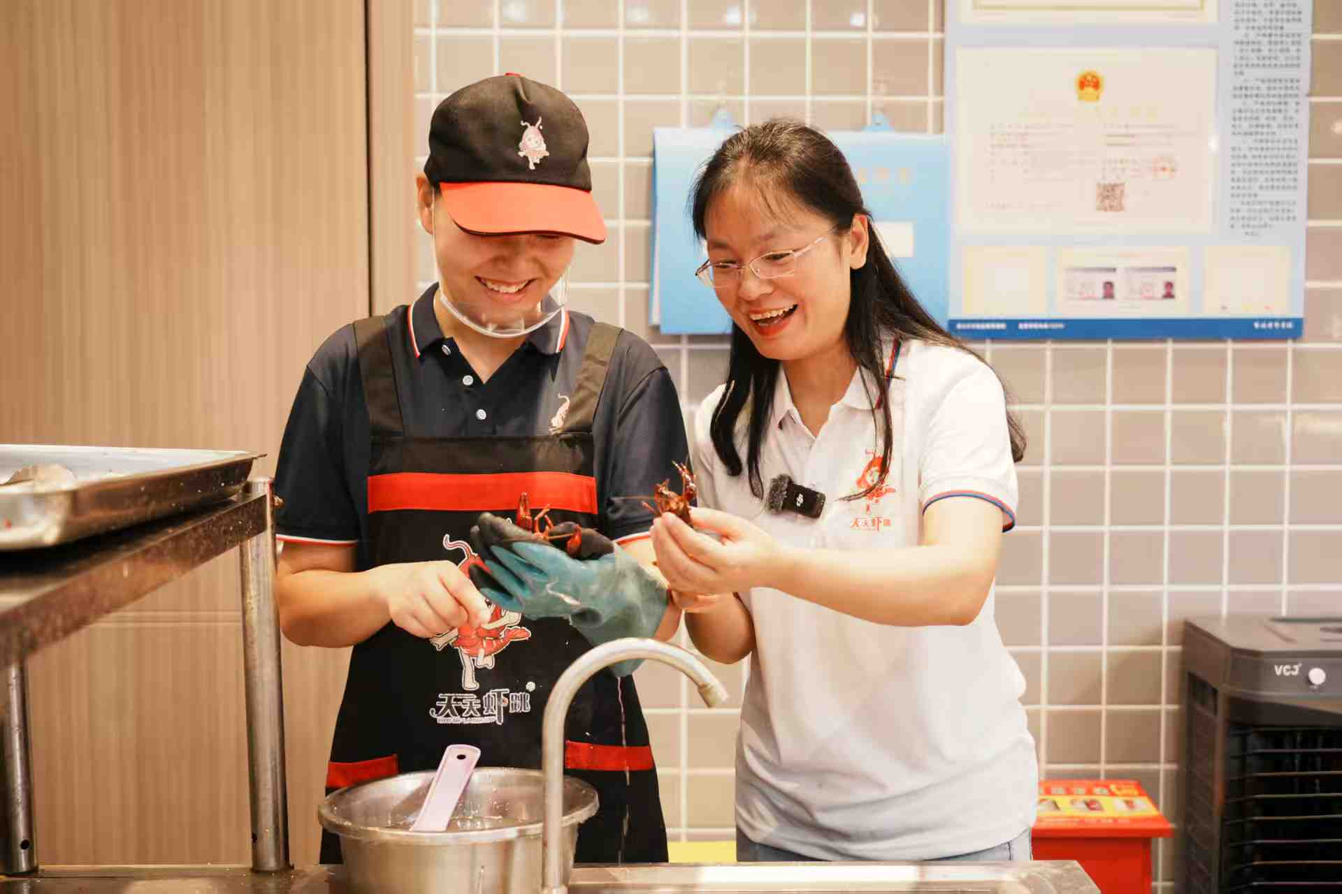 2021年,田忠玲团队研发出“一锅五味”核心工艺,同时烧制5种口味的小龙虾,调料成本降低30%,出餐速度提升50%。“天天虾跳”推出“小而美、小而精”的轻餐饮模型,15平方米空间即可开店,单店除房租外投资仅需3万元,4天就能掌握全套技术,年利润10万元至30万元。