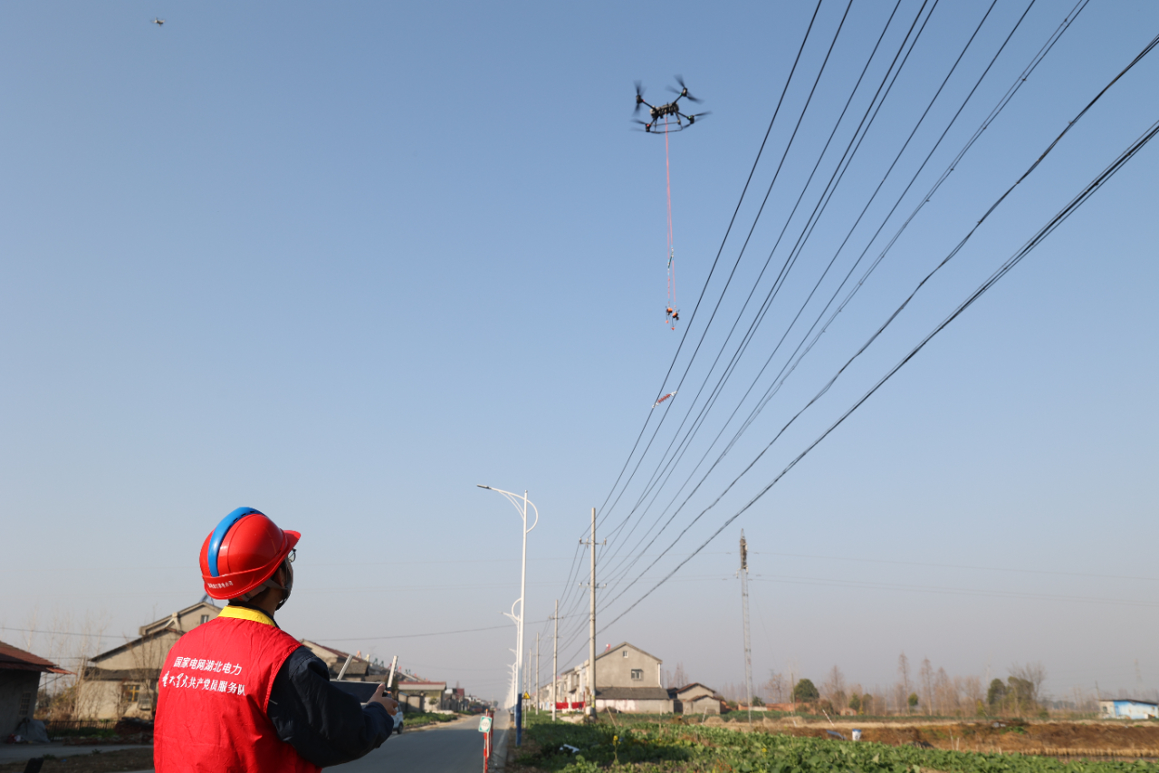 “悬停稳定,开始对接。”1月14日,在后湖管理区10千伏湾516关庙线高空作业现场,两架无人机默契配合,精准完成起飞、悬停、落线、安装间隔棒等一系列动作。国网潜江市供电公司首次采用无人机技术,成功带电完成一组(2根)10千伏线路间隔棒安装作业。