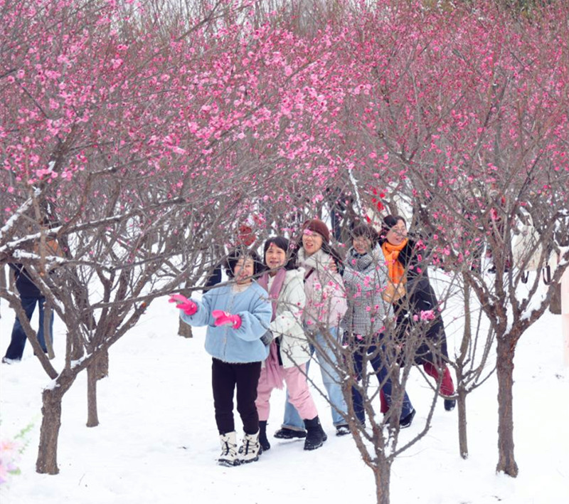 雪梅盛景吸引了众多市民慕名前往打卡,大家或驻足花下细赏梅韵,或与雪梅同框定格美好,欢声笑语间,人与景相映成趣,冬日氛围感拉满。作为潜江的城市文化地标,梅苑此番雪梅交织的独特景致,不仅为市民带来了冬日里的浪漫惊喜,更凭借高颜值画面刷屏朋友圈,成为潜江冬日里的热门打卡地。(潜江市融媒体中心记者 罗珊珊)