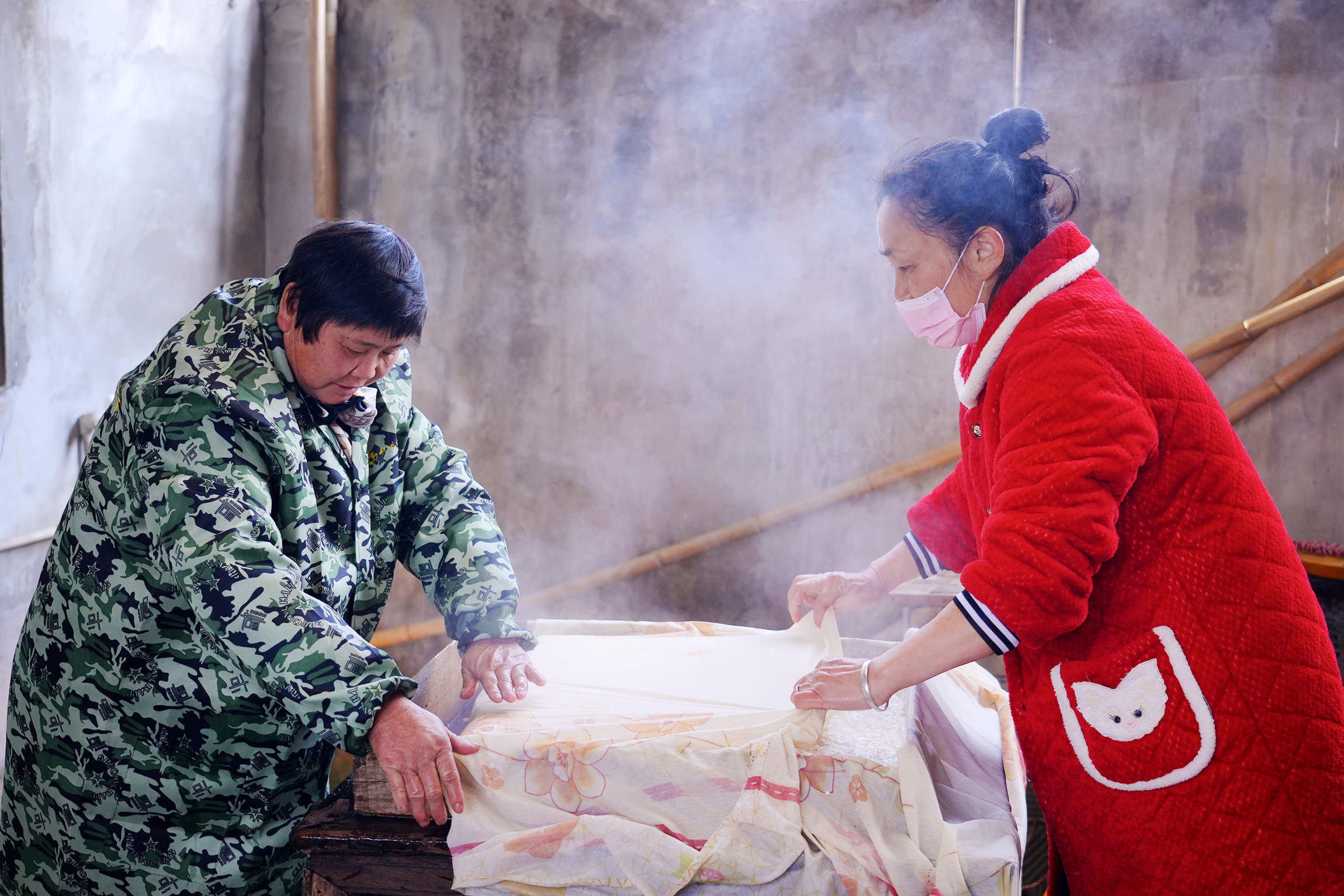 冬腊月的风掠过田埂,年的脚步愈发临近。唯有到了这会儿,乡亲们才有整块时间凑到一起,用古法酿出独属于潜江新春的滋味——柴火豆腐。清晨,龙湾镇腰河村六组60岁的毛美香守着一方柴火灶,正和邻里们忙着制作这道“过年专属美味”,几十年的老手艺,熬煮着刻在记忆里的年味。