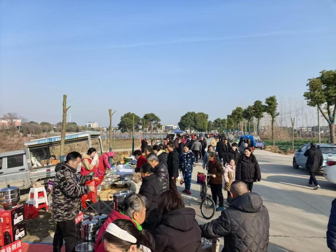 2月8日,农历腊月十九,暖阳和煦,运粮湖管理区外环路一派热闹景象。近百个摊位如长龙般绵延一公里,“文明实践赶大集”活动火热开市。
