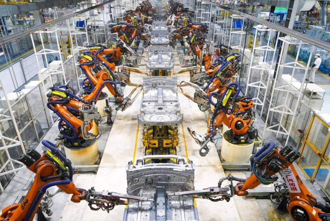 ▲广汽传祺宜昌基地焊装车间内,工业机器人忙碌作业。付蓓蓓 摄