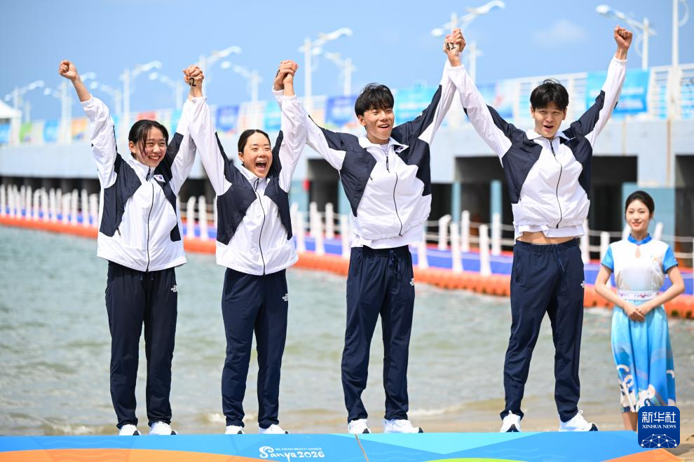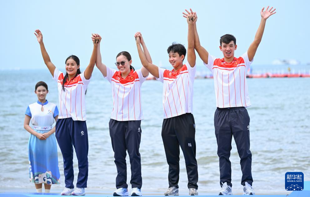 4月27日,在海南三亚举行的第六届亚洲沙滩运动会公开水域游泳男女混合4x1.5公里接力比赛中,中国队夺得冠军,越南队获得亚军,韩国队获得季军。